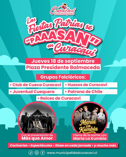 Con un ambiente familiar y lleno de tradiciones, la I. Municipalidad de Curacaví invita a toda la comunidad a participar y ser parte de esta gran celebración dieciochera.