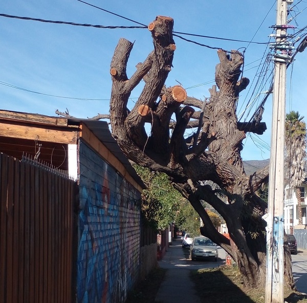 Los árboles, mudos “no sintientes”, son sindicados como una de las causas. La realidad indica que al menos en este valle, efectivamente los árboles ornamentales han tenido un destructivo manejo, y es posible ver, como CGE d, ha simplemente mutilado, sin ceñirse a lo que manda, la instrucción de la Superintendencia de Electricidad y Combustible, a través de la última Circular 204702, que indica claramente como debe realizarse el manejo de los árboles.