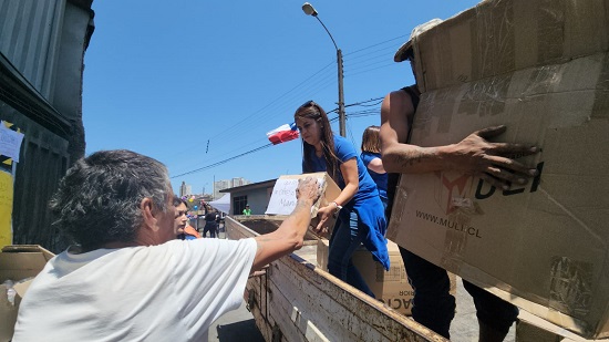 En la entrega se pudo apreciar el enorme trabajo y solidaridad de los voluntarios de Techo que están trabajando en terreno en la remoción de escombros, de vecinos que preparan almuerzos, de funcionarios públicos del Registro Civil y la Corporación de Asistencia Judicial y de los trabajadores de la empresa de agua potable y CGE que están trabajando a gran velocidad para reponer prontamente los servicios básicos, tanto en los domicilios como en la vía pública.