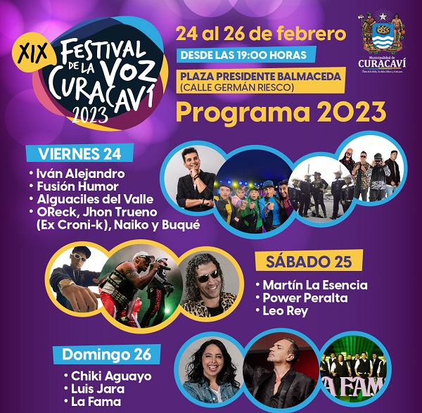 Los días viernes 24, sábado 25 y domingo 26 de febrero la Plaza Presidente Balmaceda será el escenario de la XIX versión del Festival de la Voz Curacaví 2023 evento que ya tiene su parrilla de artistas estelares para un evento que volverá a la presencialidad después de un par de años.
