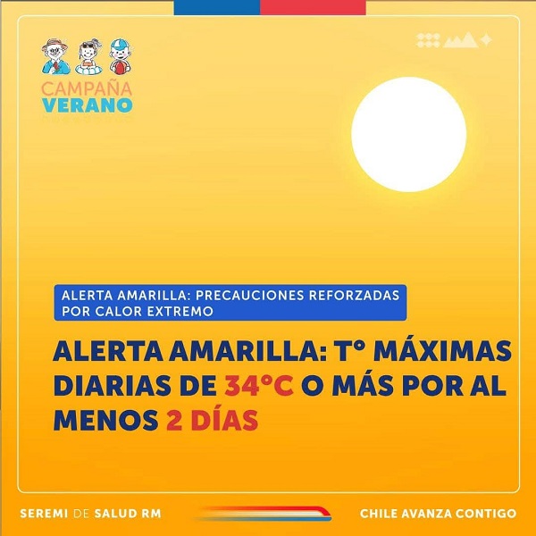 Senapred ha emitido una Alerta Amarilla en anticipación a las elevadas temperaturas que se prevén, superando los 34 grados en diversas zonas durante los próximos días, incluyendo la Región Metropolitana. Esta alerta destaca la necesidad de incrementar la vigilancia y preparación ante las posibles consecuencias del calor extremo, como el riesgo incrementado de incendios forestales y efectos adversos para la salud pública.