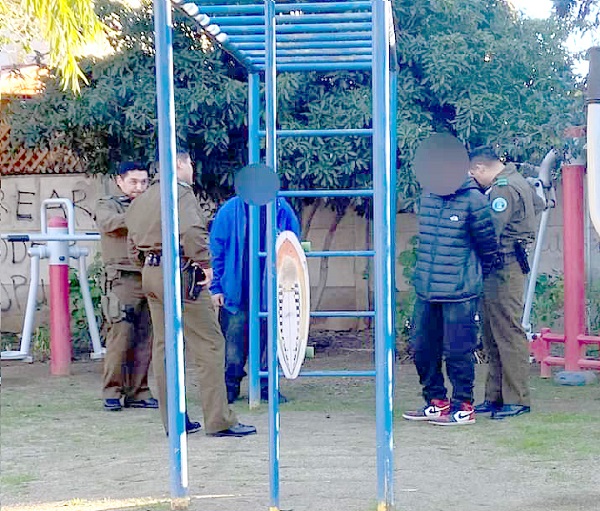 El equipo de Vigilancia Municipal, en pleno patrullaje preventivo, se apresuró a llegar al lugar de los hechos, encontrando a los sospechosos en la calle Teniente Bernardo Escobar con la calle Cacique Chumavo, en la Villa Los Pensamientos.